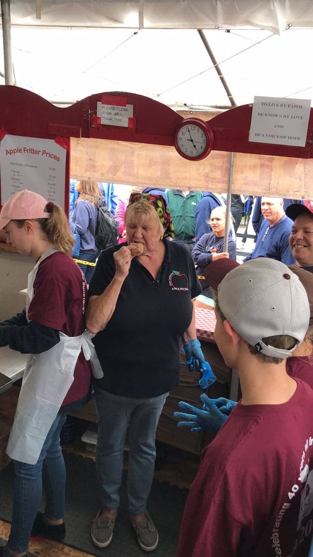 In the fall of 1969, a simple idea sparked a delicious tradition in Southington, Connecticut. Paul Steinke of Zion Lutheran Church received an unusual donation – a 50-pound bag of flour – and, with his wife, proposed using it to make apple fritters for a new town festival. They approached a church member named Dorothea “Dot” Czarnota, known for her baking talents, to develop the recipe. Dot experimented with different methods – dipping apple rings, chunks, even wedges in batter – but none met approval. Finally, after much trial and error, Dot perfected a new apple fritter recipe that passed the taste test with flying colors. When the congregation sampled Dot’s fritters at the summer picnic, they were an instant hit. Buoyed by this success, the members of Zion Lutheran Church agreed to sponsor an apple fritter booth at the upcoming festival, not realizing they were about to launch a legend.